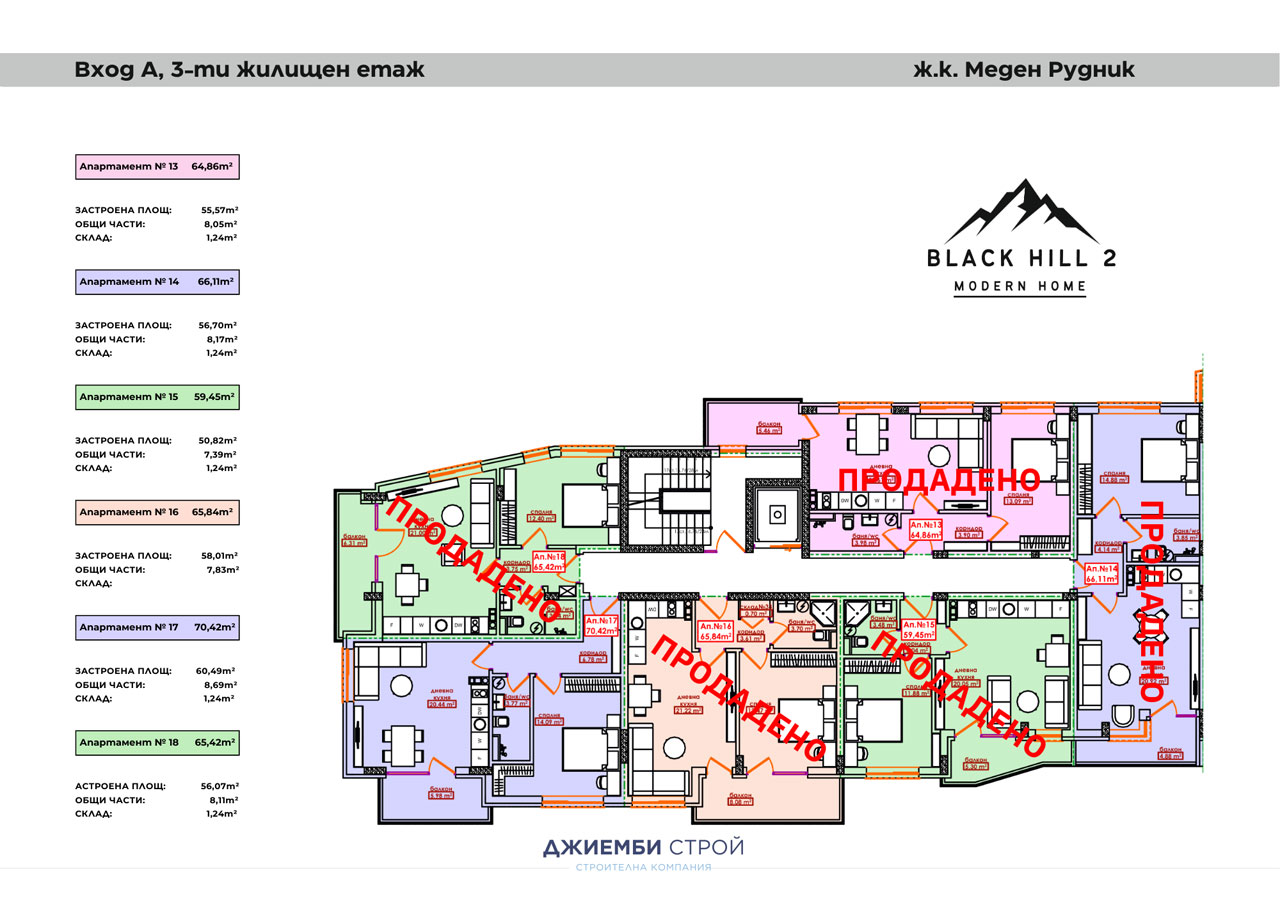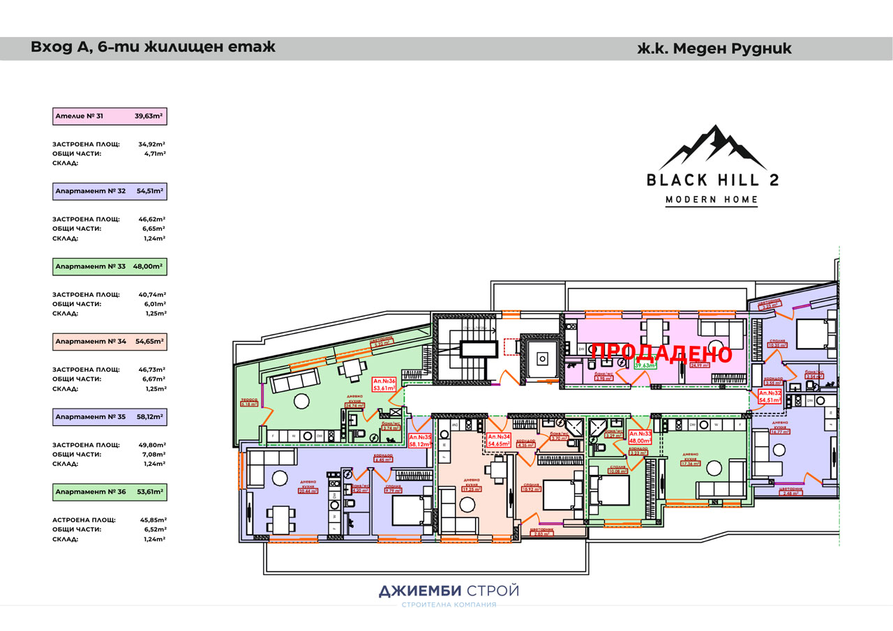 С гордост Ви представяме нашия нов проект BLACK HILL 2 – новата ни жилищна сграда с обща разгъната застроена площ от 8 000 кв.м. Проектът е разположен в непосредствена близост до емблематичната сграда BLACK HILL в ж.к. Меден рудник на ул. ''Кооператор'', като същевременно е осигурено комфортно отстояние и усещане за простор. BLACK HILL 2 следва елегантната визия и архитектурна линия на първата сграда, отличавайки се с модерна фасада и стъклени парапети, които подчертават нейния съвременен облик. Сградата ще се състои от сутерен, партер и шест жилищни етажа, включващи общо 91 апартамента, от които: 6 - ателиета, 11 - едностайни, 64 - двустайни, 10 - тристайни, проектирани с внимание към функционалността и комфорта на бъдещите обитатели. Осигурени са още: 46 паркоместа в сутерен, 26 гаража на ниво партер и 19 дворни паркоместа. BLACK HILL 2 – продължение на качеството, визията и доверието, което изграждаме с всеки наш проект, като отново е наблегнато на изключително малкия процент от общи части.